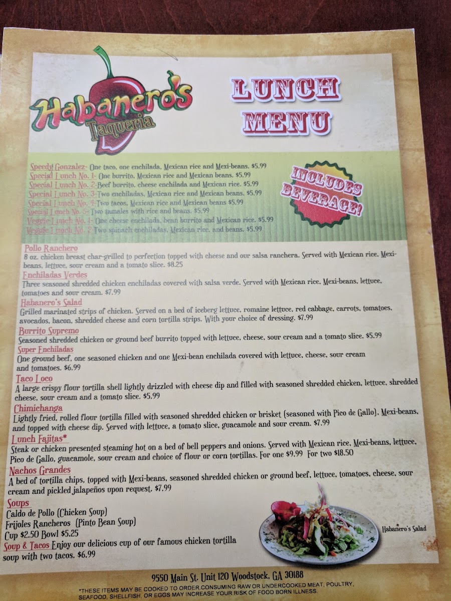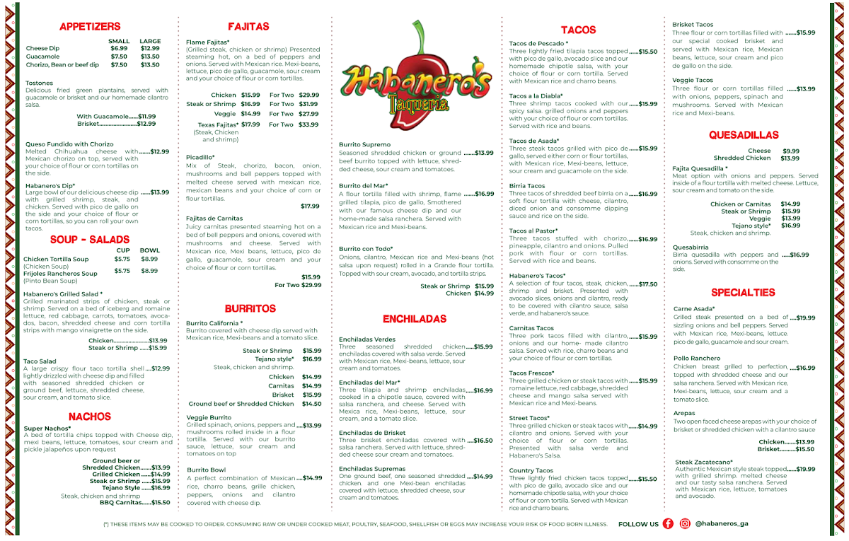 Welcome to Habanero's Taqueria, where the vibrant flavors of Mexico come alive in every dish. Located in the heart of Woodstock, Georgia, this taqueria excels in both quality and authenticity. The menu is a treasure trove of culinary delights, featuring mouthwatering appetizers like their cheesy queso fundido, and zesty guacamole. For those craving something hearty, the enchiladas are standout choices, particularly the Enchiladas Verdes, priced at $15.99.
